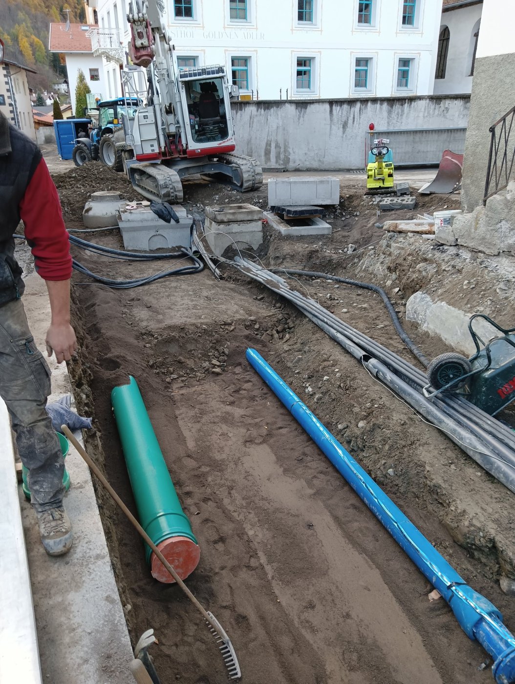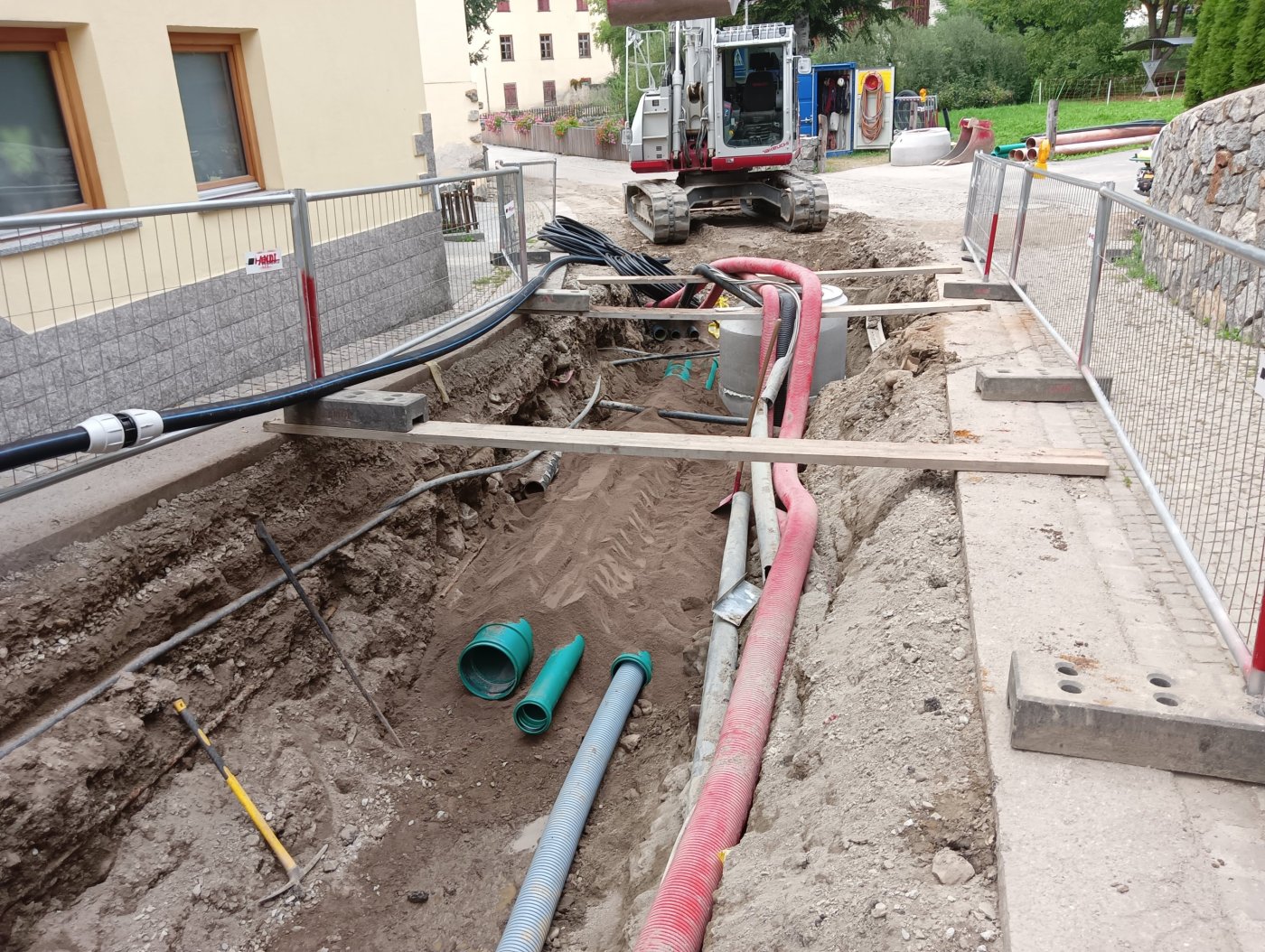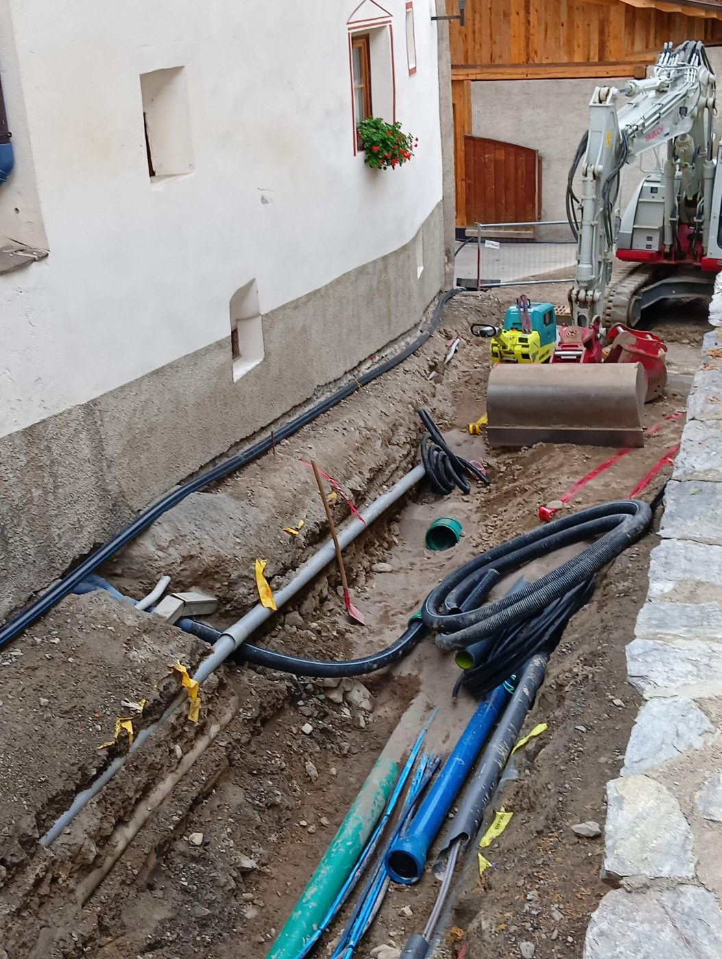 Die Neuverlegung umfasste die Trinkwasser- Schmutz und Regenwasserverrohrung, sowie die öffentliche Beleuchtung und den Glasfaserausbau.